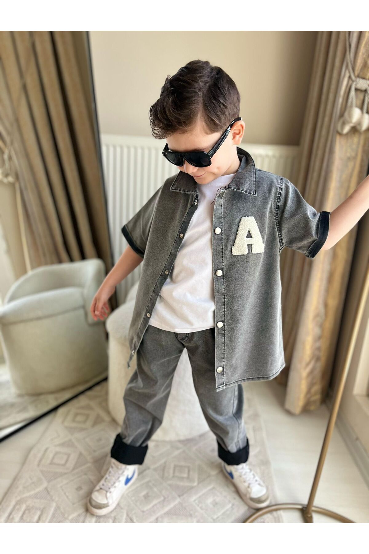 gömlek yaka detayı ile şık bir görünüm sunar.