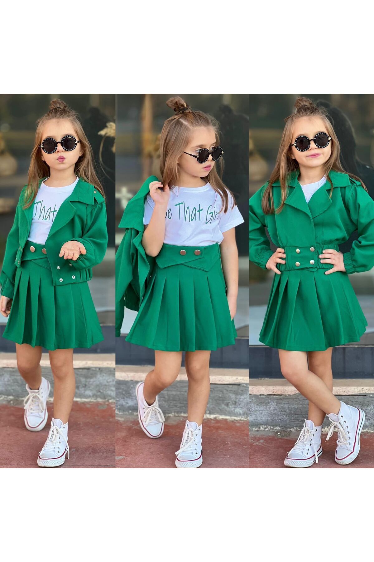 ceket, etek ve hırka içerir, kombin seçeneklerini artırır.