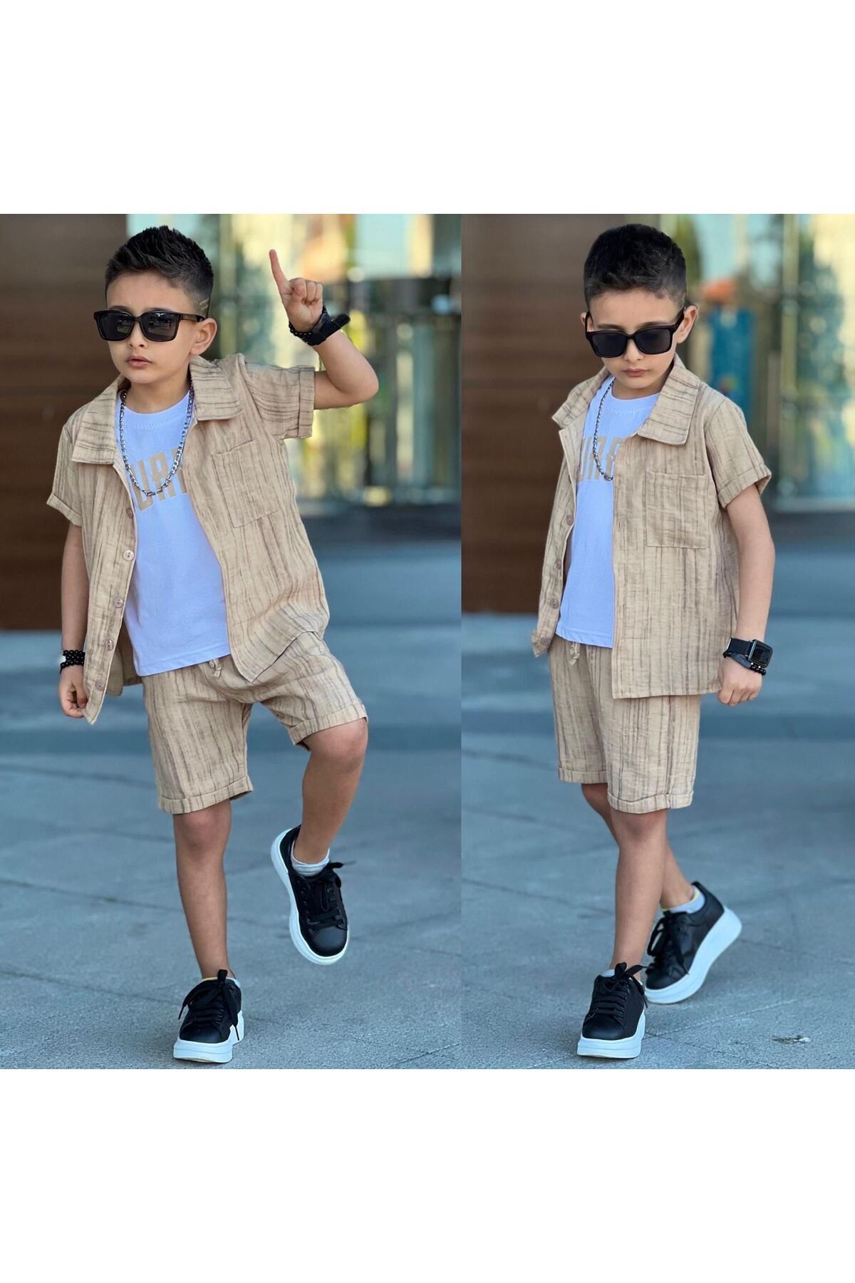 - Gömlek-şort alt-üst takım olarak tasarlanmıştır