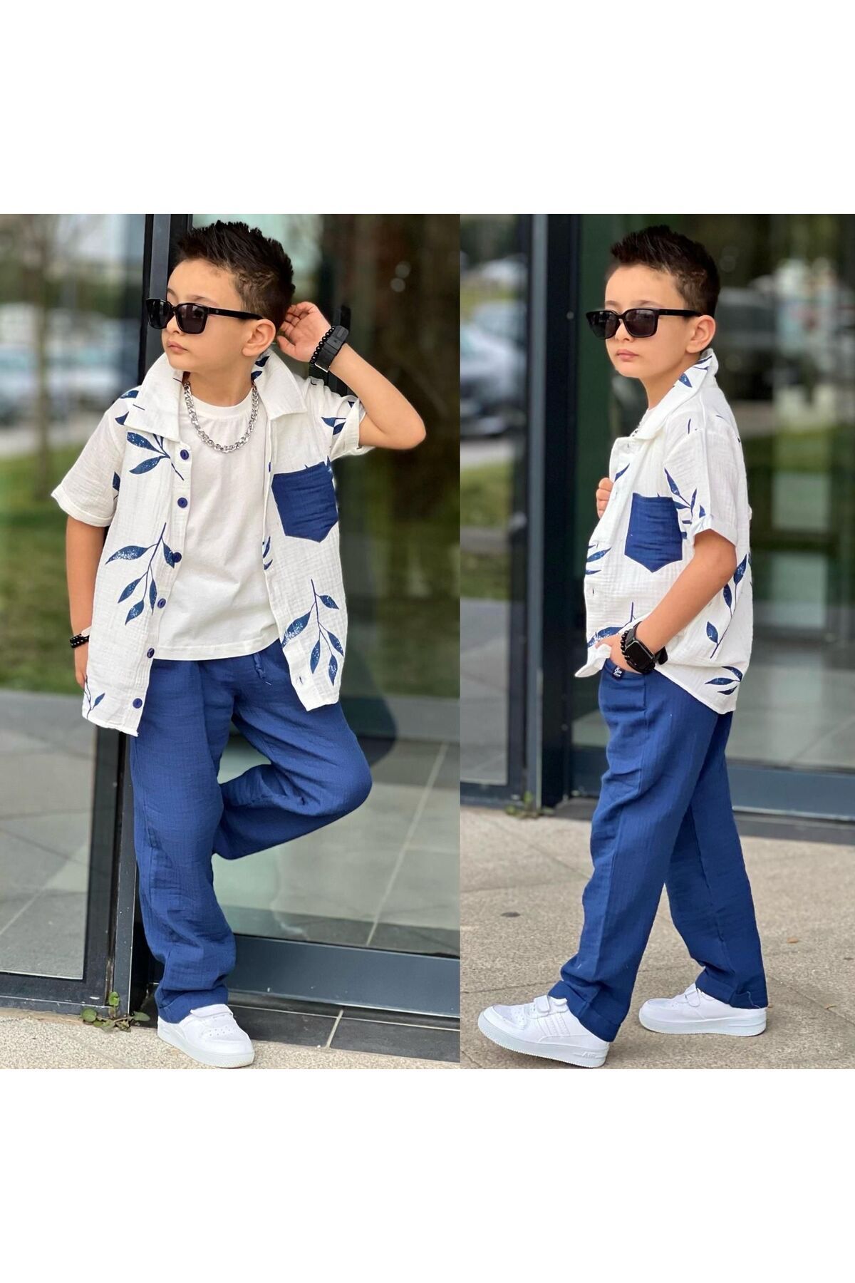 -Gömlek-pantolon alt-üst takımı olarak kombinlenebilir