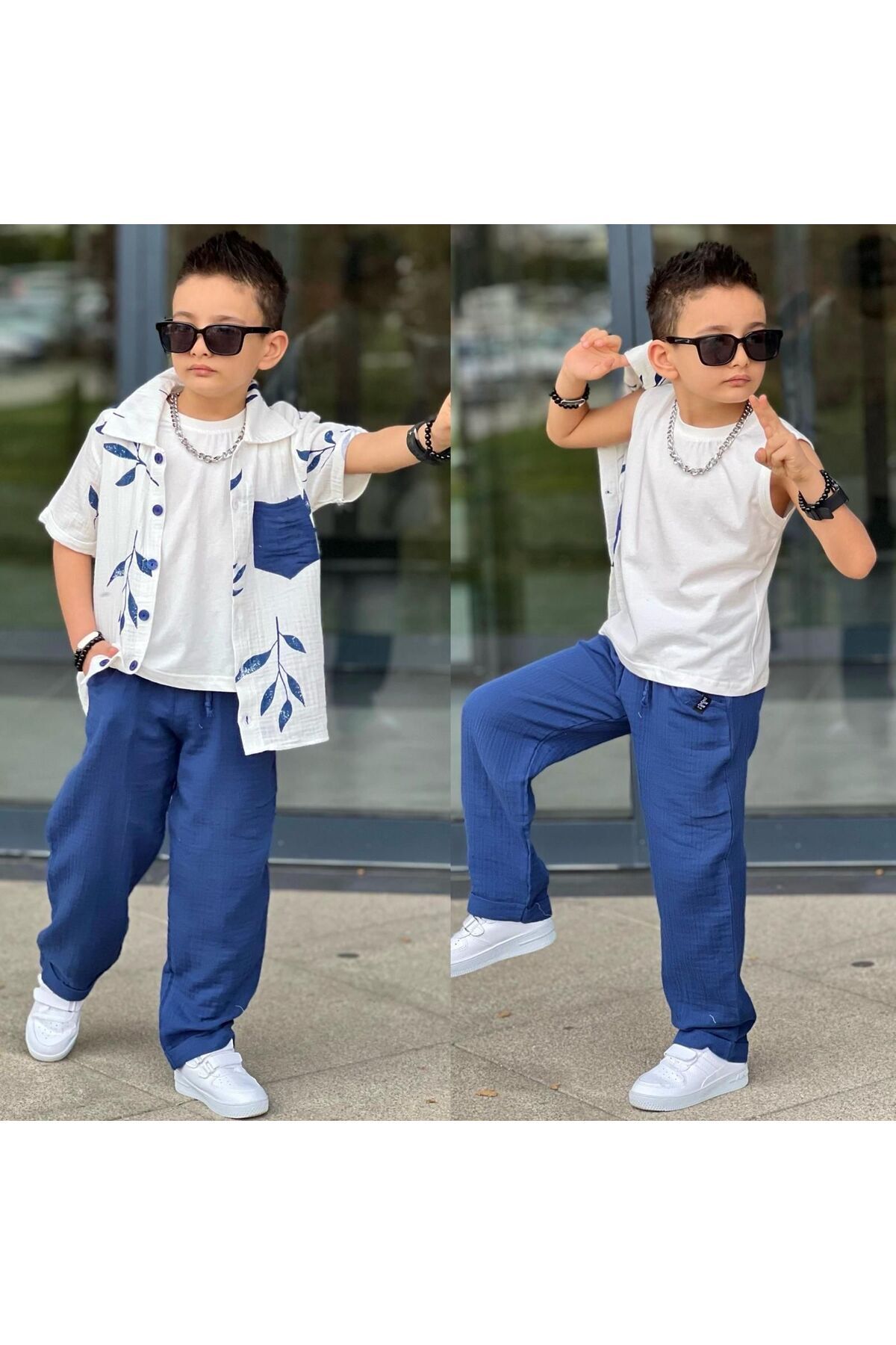 gömlek müslin kumaş 3 kombin Lacivert - 7-8 Yaş