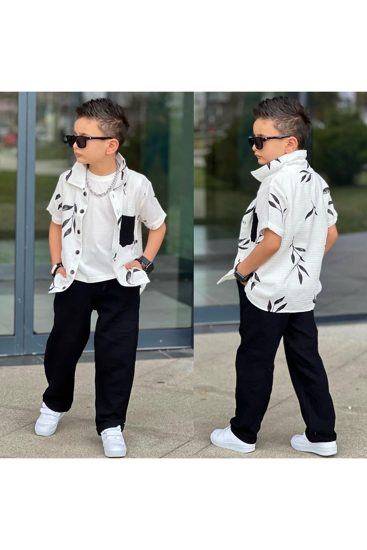 gömlek müslin kumaş 3 kombin Siyah - 7-8 Yaş