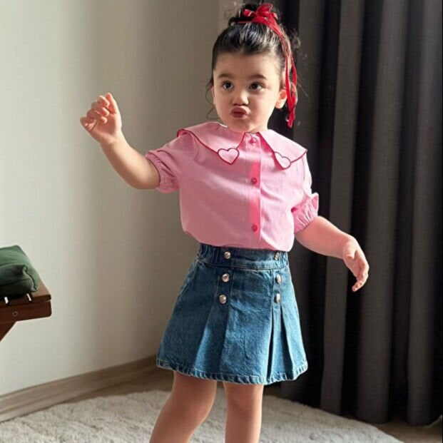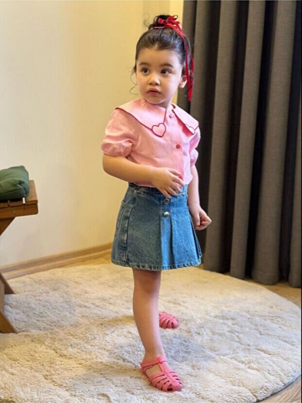 İki parçadan oluşan bu takım, hem şıklığı hem de rahatlığı bir arada sunar; kalpli kot şort etekli tasarımı ile göz alıcı bir görünüm sağlar.; - Saten dokuma tipi sayesinde yumuşak bir dokunuş hissi verirken, normal bel kesimiyle konforlu bir kullanım sunar.; - Çocukların enerjisini yansıtan bu takım, sportif ve dinamik tarzıyla dikkat çeker; kalp desenli detaylarıyla da sevimlilik katmaktadır.; - İlkbahar ve sonbahar ayları için ideal olan bu takım, kısa boyu ile mevsimsel geçişlerde rahatlıkla tercih edilebilir.; - Düz kesimiyle vücuda tam oturan bu takım, düğme detayları sayesinde pratik kullanım imkanı tanır.; - Astarsız yapısıyla hafiflik hissi veren bu takım, günlük giyim için uygundur ve kolayca kombinlenebilir.; - Dokuma materyali sayesinde dayanıklılığı artırılmıştır; böylece uzun süreli kullanım için idealdir.; - Trend ortamlarda bile stil sahibi görünmenizi sağlayacak bu takım, genç ruhunuza eşlik edecek.