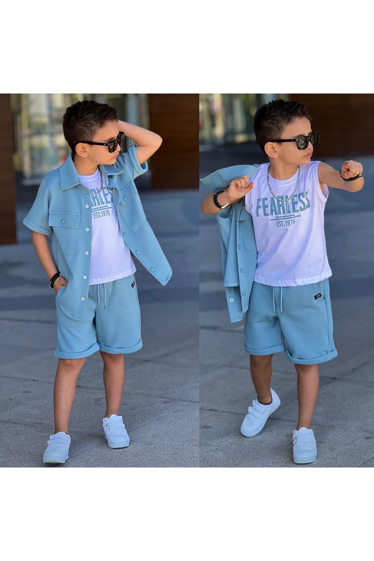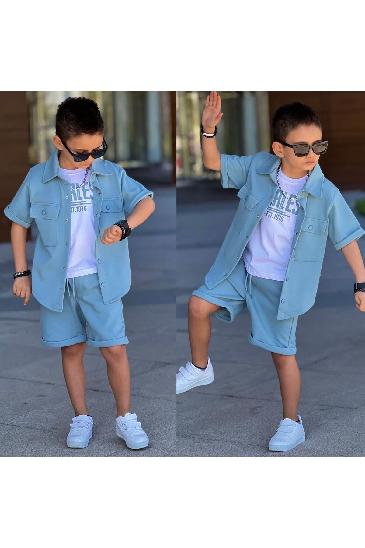 - Alt-üst Takımı Olarak Tasarlanmış Gömlek-şort Kombiniyle Bütünsel Bir Görünüm Elde Edilir