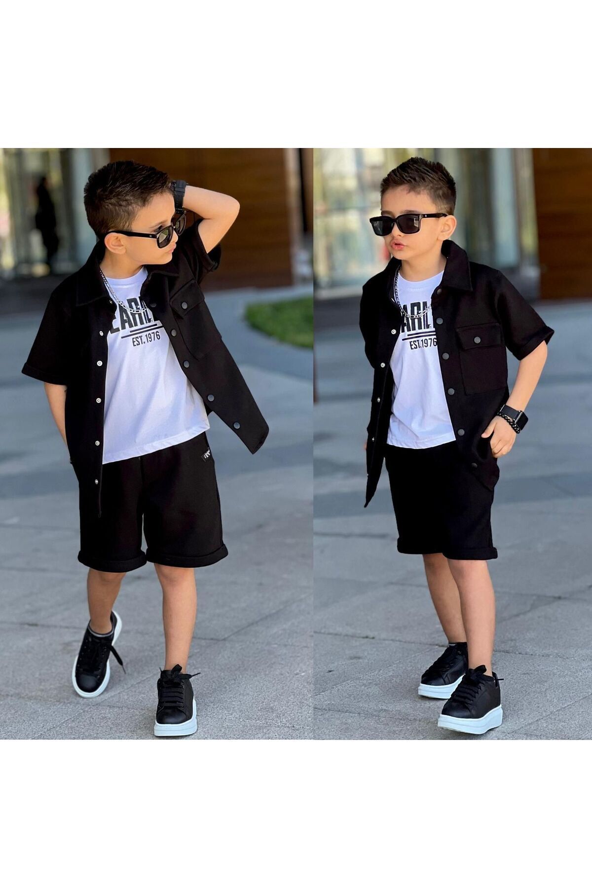 - Alt-üst Takımı Olarak Tasarlanmış Gömlek-şort Kombiniyle Bütünsel Bir Görünüm Elde Edilir