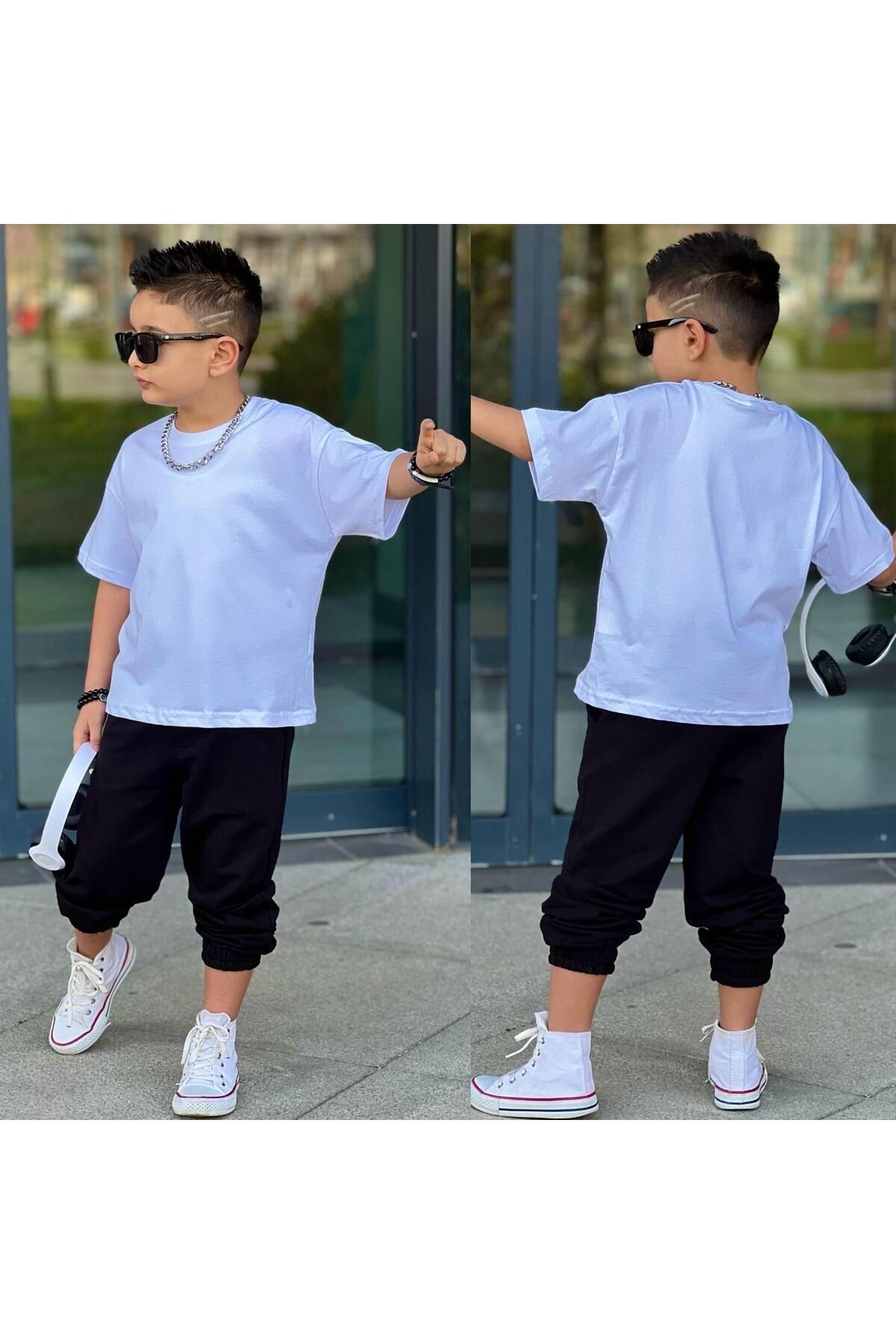 - T-shirt-pantolon ikilisi olarak tasarlanmış bu takım, günlük giyimde şıklığı ve rahatlığı bir arada sunar.