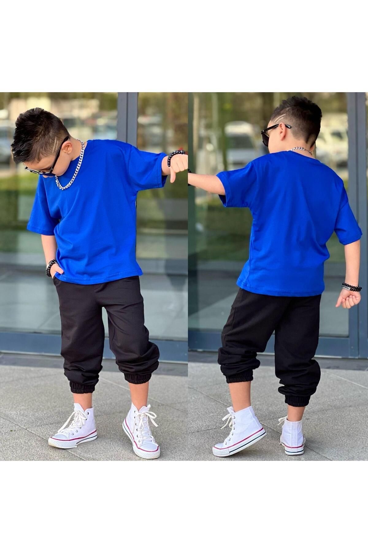 - T-shirt-pantolon ikilisi olarak tasarlanmış bu takım, günlük giyimde şıklığı ve rahatlığı bir arada sunar.
