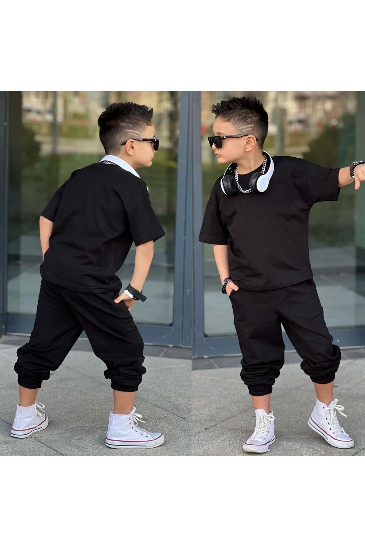 - T-shirt-pantolon ikilisi olarak tasarlanmış bu takım, günlük giyimde şıklığı ve rahatlığı bir arada sunar.